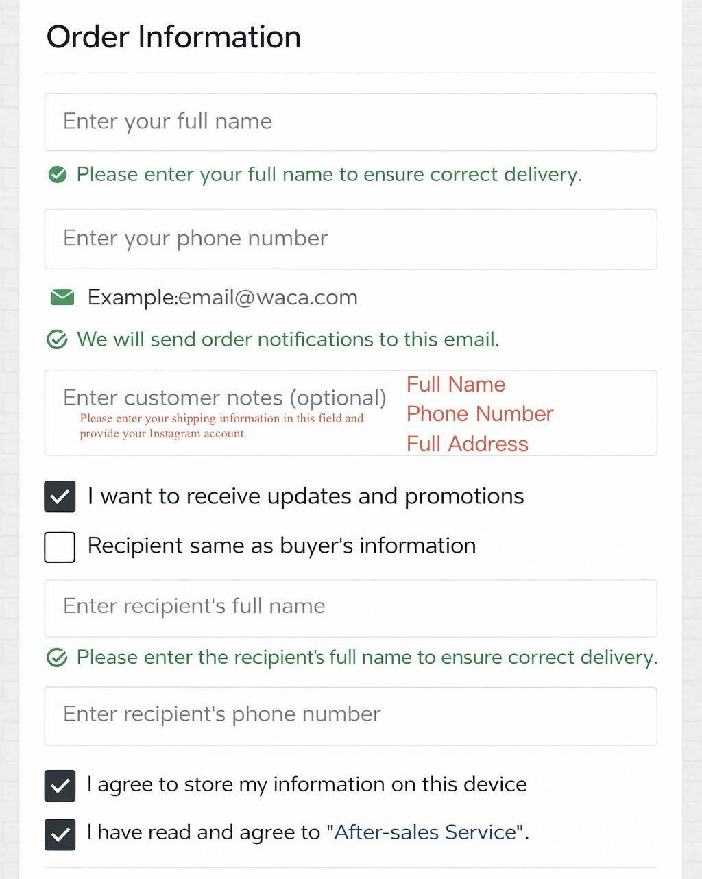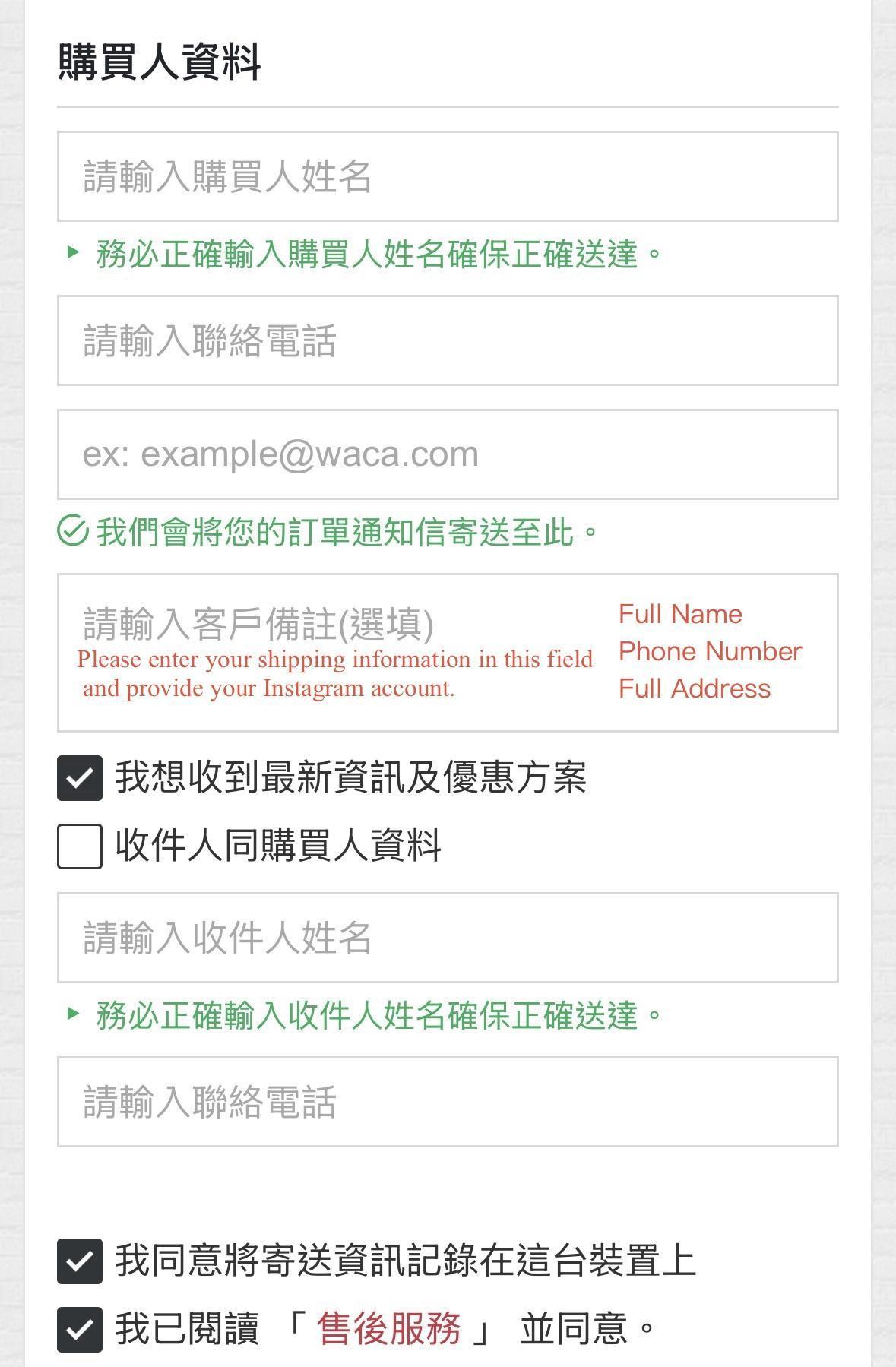 下單後選擇實體店面取貨。寄貨資訊請填寫在客戶備註欄位內。姓名、電話、完整住址。並提供IG帳號,以方便聯繫。